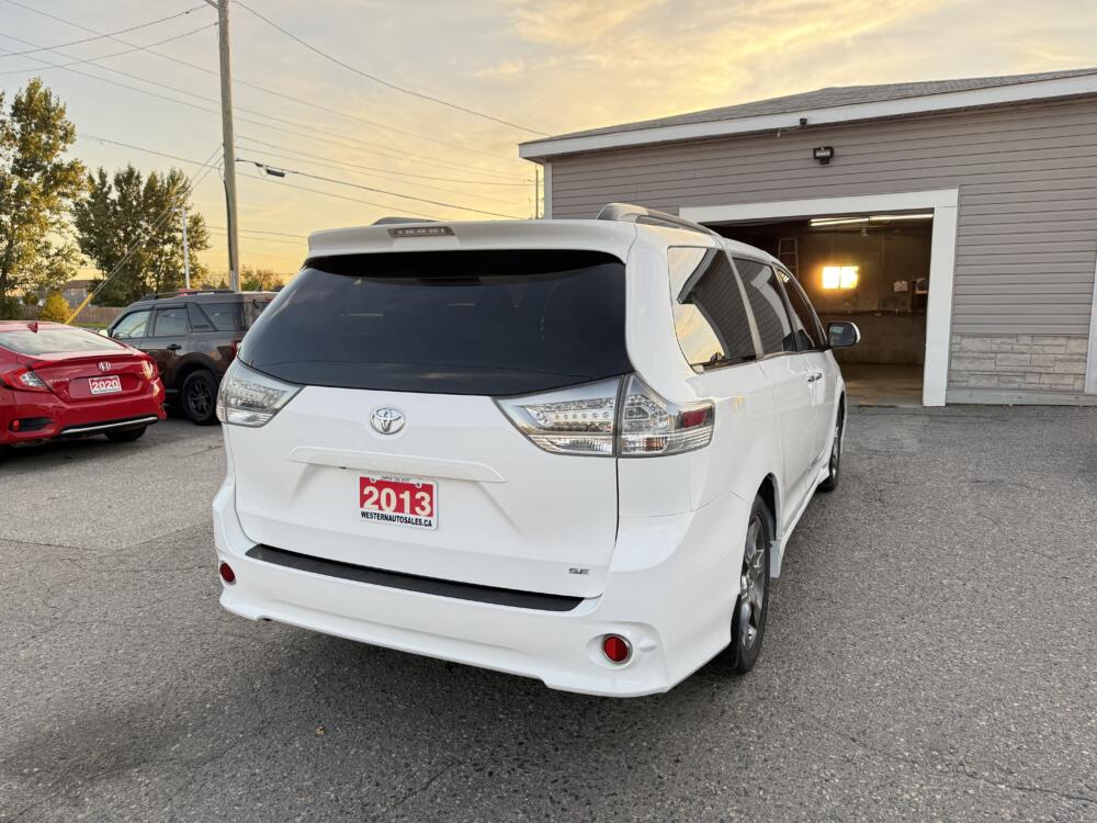 The 2013 Toyota Sienna SE 8-Passenger is a family-friendly minivan that blends practicality with a touch of sportiness. It features a 3.5L V6 engine for smooth, reliable performance and seating for up to eight. The SE trim adds a sport-tuned suspension, bold exterior styling, and 19-inch alloy wheels. With spacious interior comfort and versatile cargo space, it’s built to handle daily life and road trips with ease.