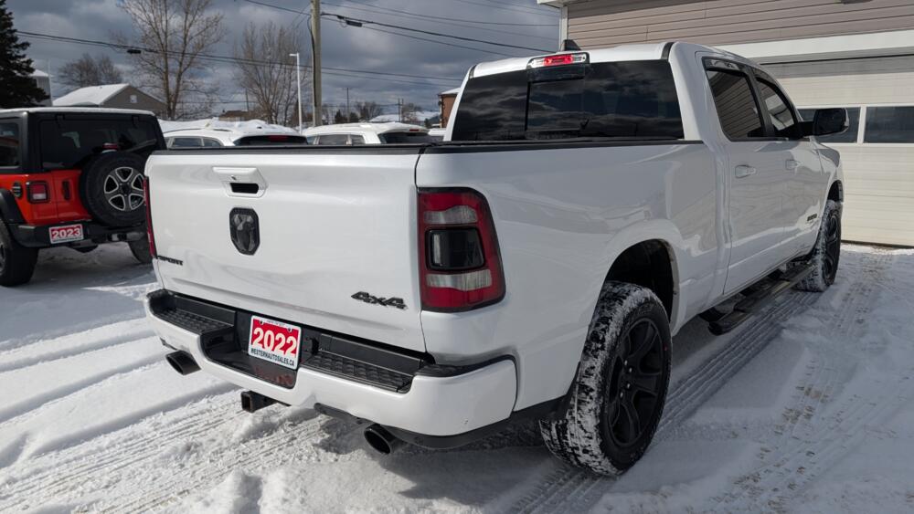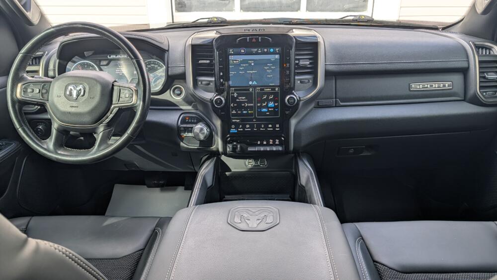 The 2022 Ram 1500 Sport Crew Cab 4×4 is a full-size pickup that blends rugged capability with premium comfort and modern technology. Powered by a 5.7L HEMI V8 delivering 395 horsepower and 410 lb-ft of torque, it offers impressive towing strength and confident off-road performance. Inside, the spacious Crew Cab provides seating for up to five, with upscale features like leather seating, heated seats, and a large infotainment system. Paired with a smooth 8-speed automatic transmission and advanced safety and driver-assist features, it’s well-suited for both demanding work and everyday driving.